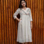 Women’s Cotton Embroidered Short Anarkali Gown (Off White)